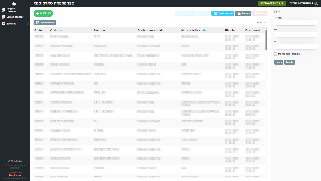 Il software BackOffice monitora le entrate e le uscite dai vari visitatori e permette la gestione delle anagrafiche e delle opzioni del software.