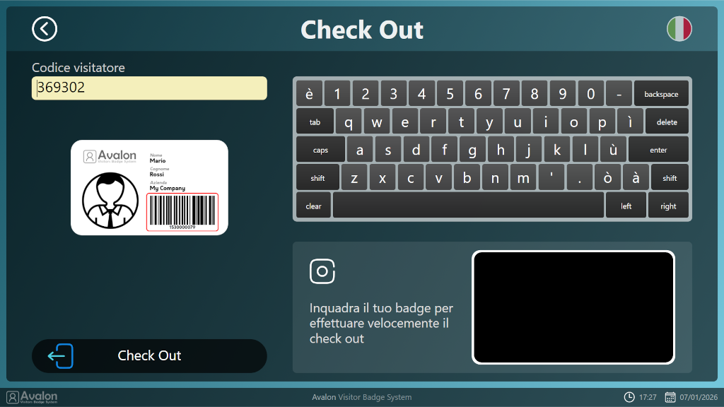 Usa il mio badge è un sistema pensato per il visitatore frequente: grazie alla lettura del barcode tramite webcam il software riesce a risalire ai dati del visitatore, favorendo il check-in immediato.